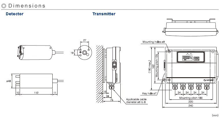 | Main material | Detector:SUS316L, sapphire glass, fluorocarbon rubber, EPDM, Polyolefin(cable) |