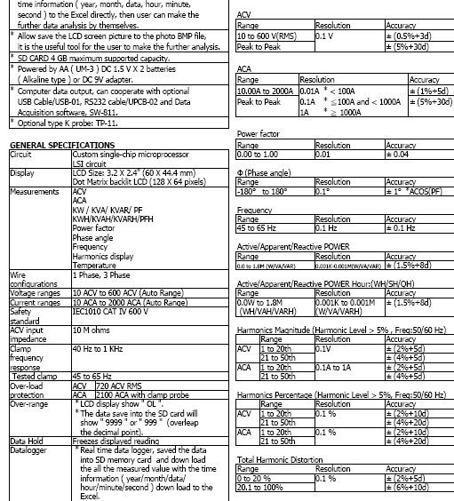 • Measures ACV, ACA, KW, KVA, KVAR, PF